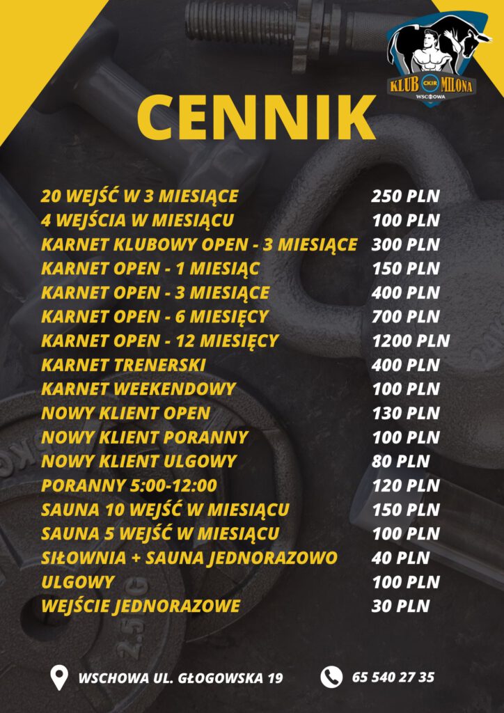Siłownia czynna w godzinach 5.00-24.00 Sauna czynna po wcześniejszym umówieniu telefonicznym (tel.65 540 27 35 ) lub osobiście + treningi personalne : Honorujemy karty Medicover oraz Multisport